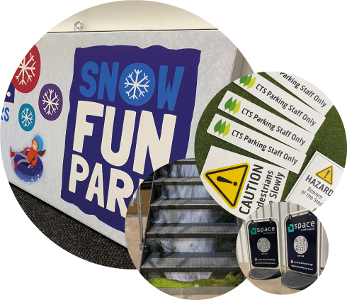 We offer a wide range of floor graphics, great for promoting your business and products in a creative and unique way, also for navigational and promotional purposes in shopping centres, exhibition halls, schools and universities.